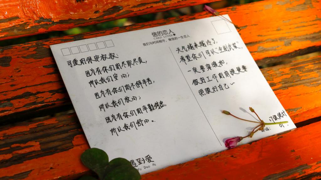 无论你在做什么工作,我想我也不认识你,虽然这张卡片不能给你带来什么,但我希望它能在这寒冷的天气里带来一丝温暖。天气变冷了,你的工作依旧在进行,生活的负担一定不好受。希望你快乐常驻,身体健康,哭泣有人陪快乐有人知,你的深情不会被辜负。天冷了,穿上厚衣服,别生病。